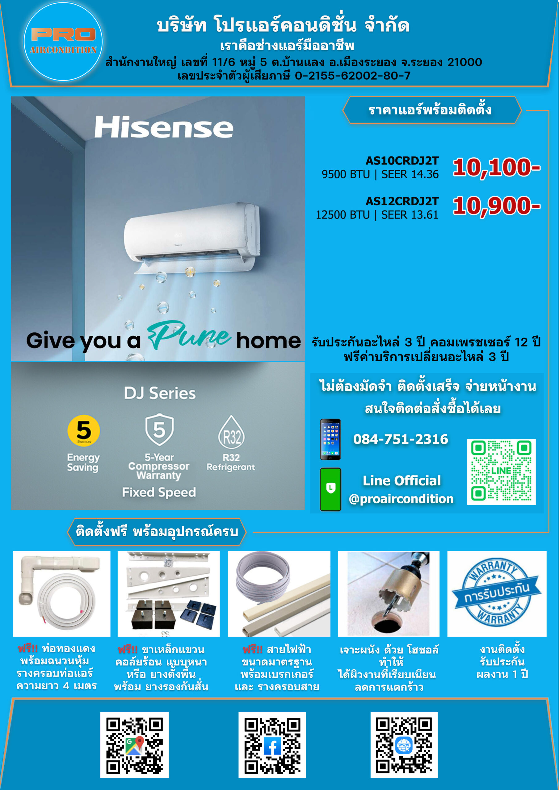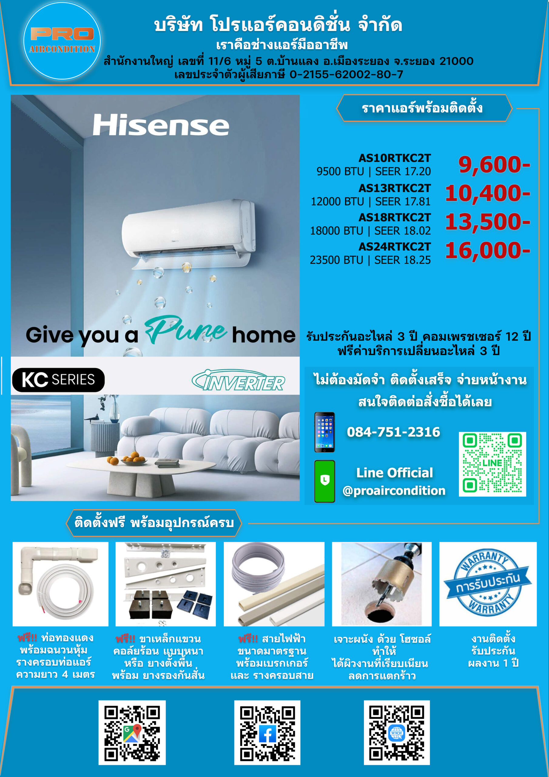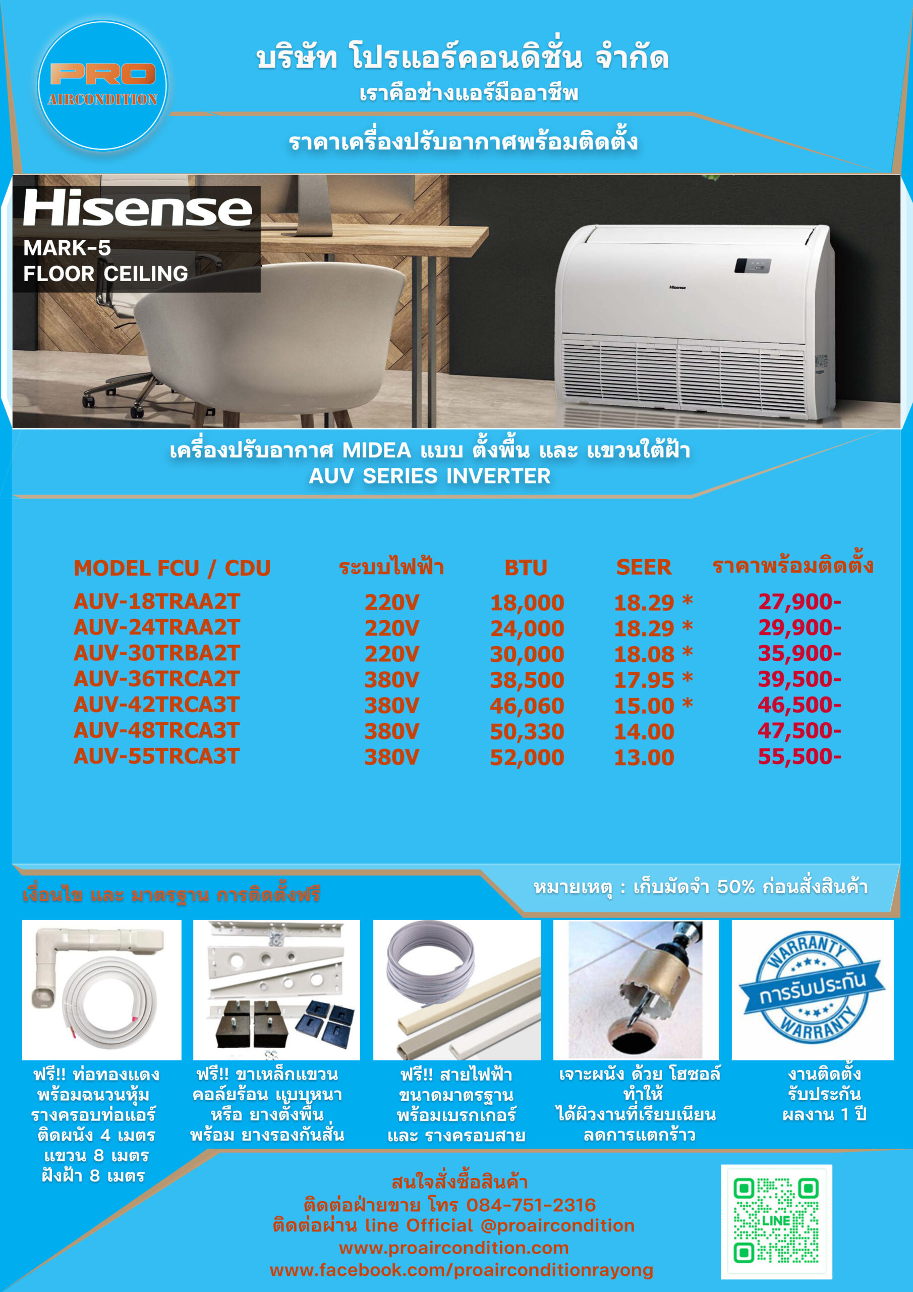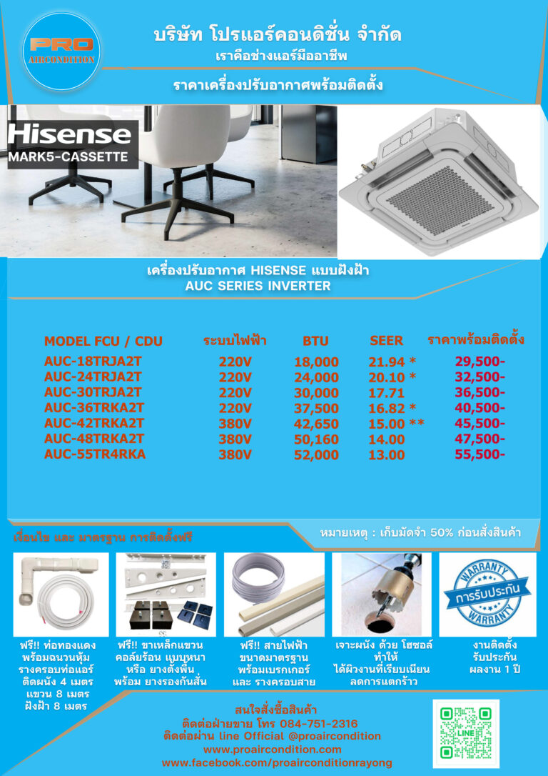 รายการเครื่องปรับอากาศ แบบติดผนังพร้อมติดตั้ง