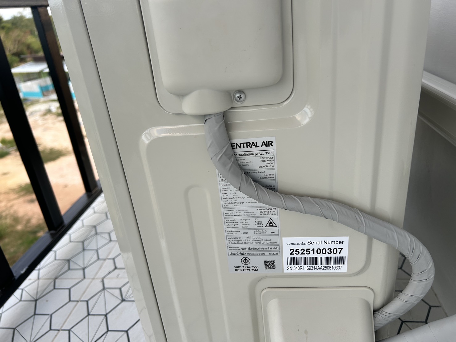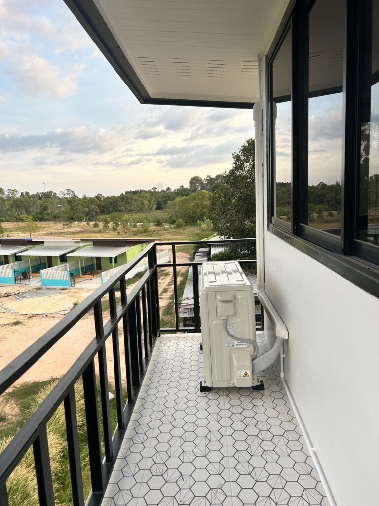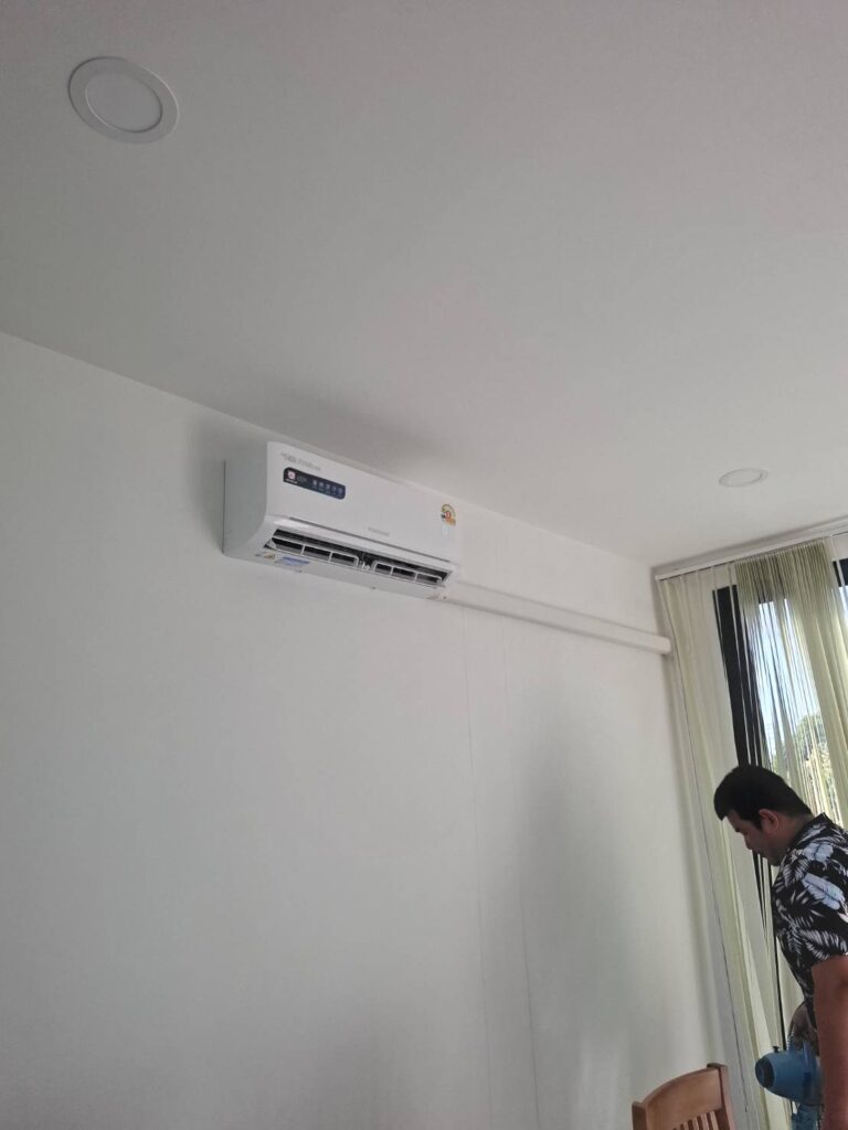 6 ธันวาคม 2568 งานติดตั้งเครื่องปรับอากาศ Central Air รุ่น IVM Series ขนาด 12000 บีทียู จำนวน 2 ชุด หน้างาน ศรีราชา หมู่บ้าน เดอะ คีริน
