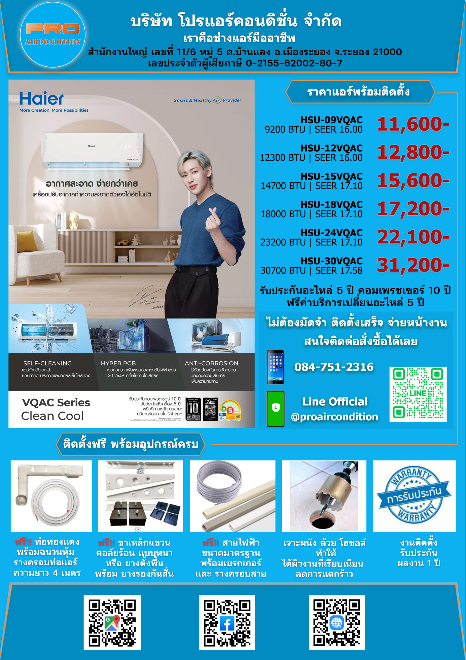 รายการเครื่องปรับอากาศ แบบติดผนังพร้อมติดตั้ง